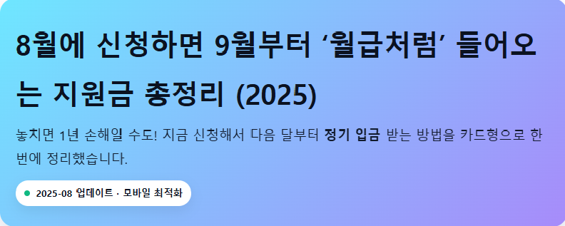 1. 청년도약지원금 – 월 50만 원 × 6개월 = 총 300만 원